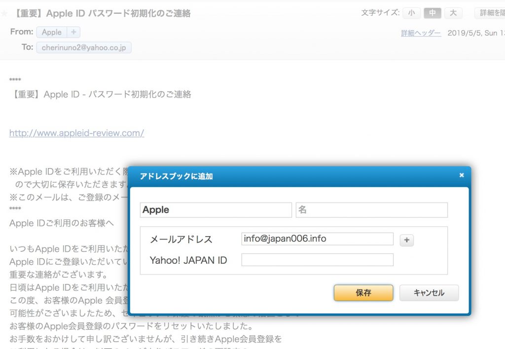 Appleからのメールはapple.comのドメインだ!ばかやろう。