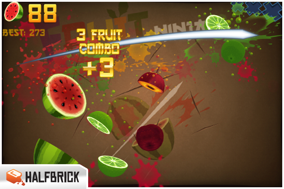 スワイプ操作で果物を切って行く爽快な定番スラッシュゲーム