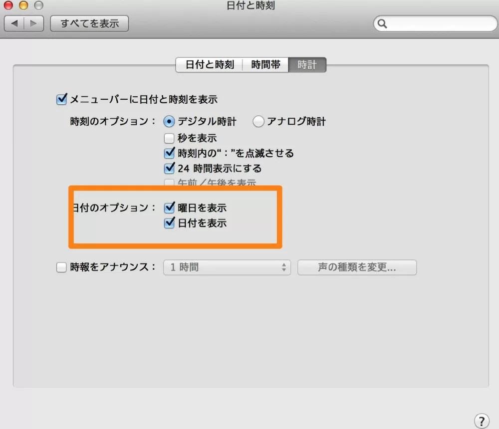 [Mac]メニューバーの時計に日付と曜日を表示させる方法