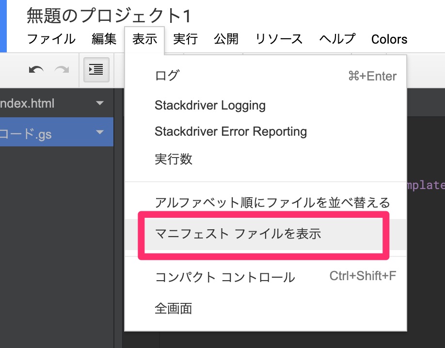 appsscript.jsonのファイルが開いたら