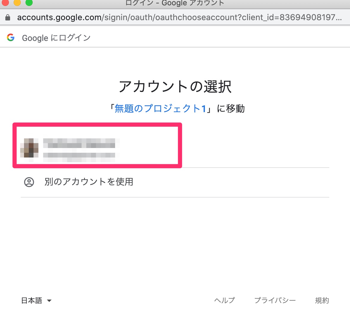 「プロジェクト が Google アカウントへのアクセスをリクエストしています」という表示に切り替わります。