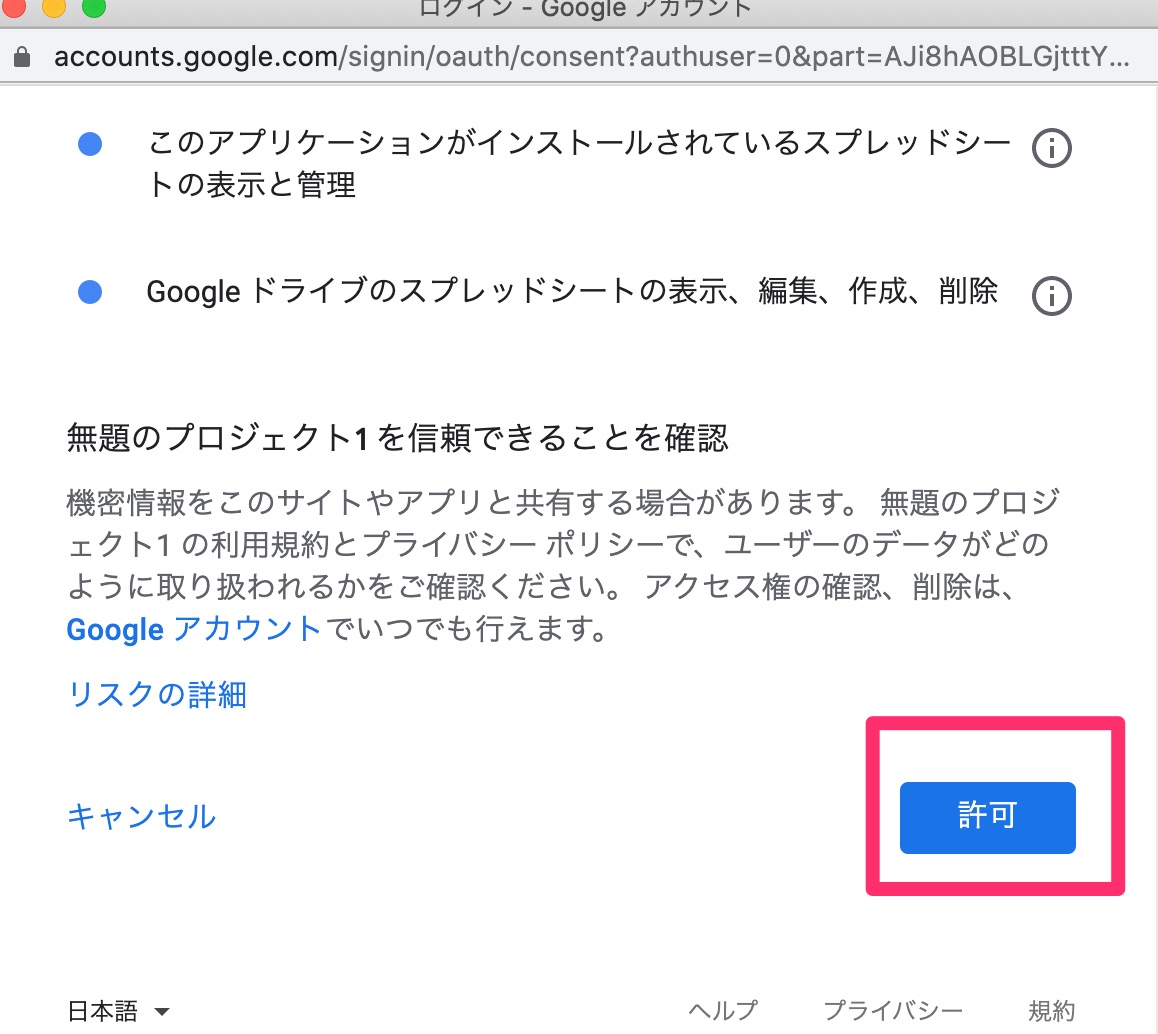 「許可を確認」を押します。