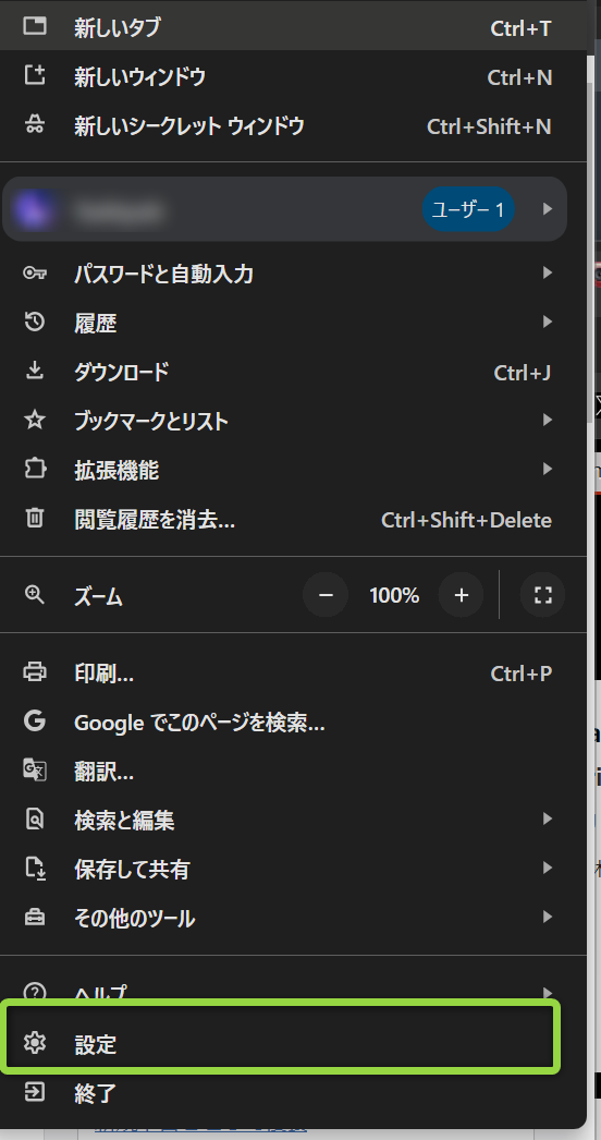 Google Chromeの設定を開きます。