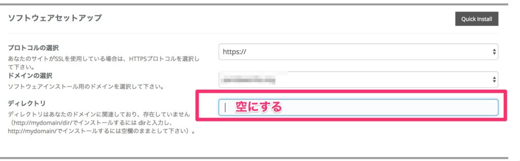 mixhost側の初期設定でディレクトリ欄には「wp」と入っているのでここは「空」にしてください。