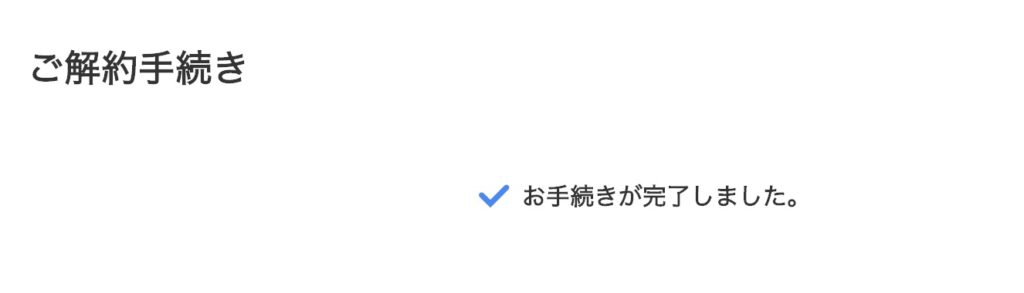 確認ページがでて表示がステータス稼働中(解約予約中)に変わればOKです。