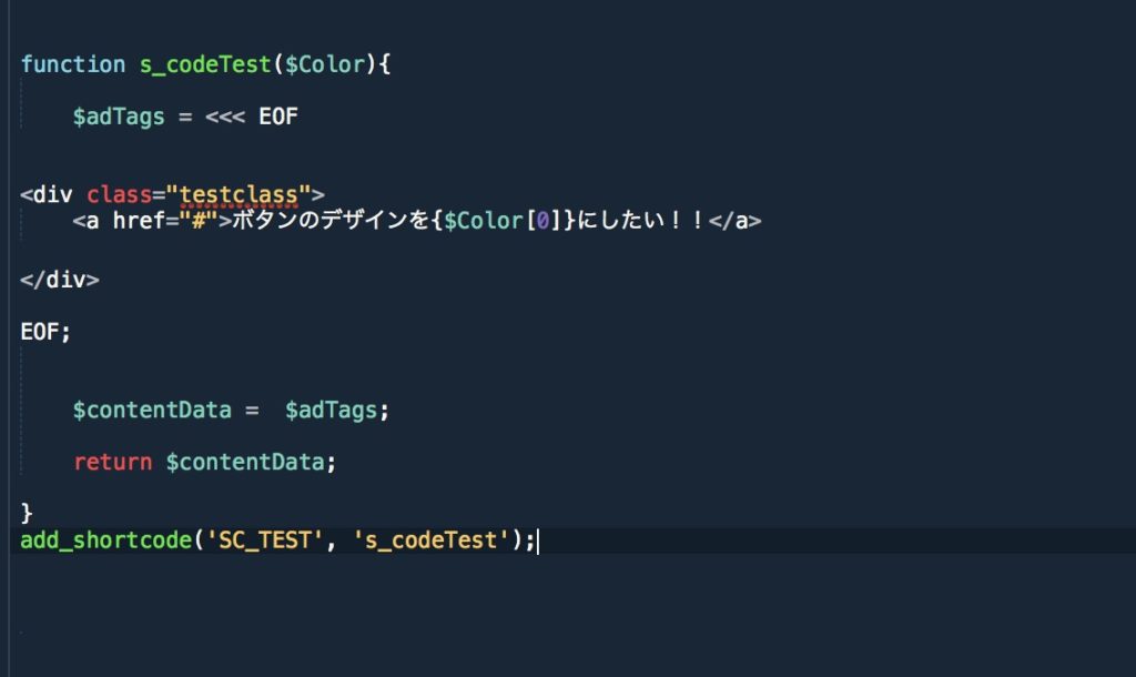 赤枠が関数の名前で、青枠はショートコードの名前になります。