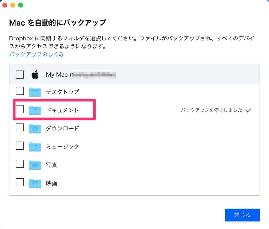 Macを自動的にバックアップの設定で、「ドキュメント」にチェックが入っていたのを外した。