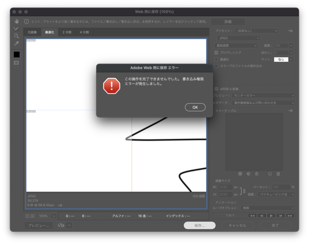PhotoshopのWEB用に保存時の書き込み権限エラーが出る