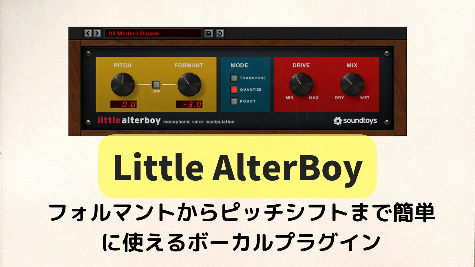 Soundtoys Little AlterBoy(サウンドトイズ リトルオルターボーイ)は、Soundtoys社が開発したエフェクトプラグインです。Little AlterBoyは、ボーカルや楽器のトラックに対して様々な音声変換を行うためのツールとして使用されます。特に、ボーカルトラックに対してエキサイティングなエフェクトやハーモニーの追加を行い、クリエイティブなサウンドデザインを可能にします。