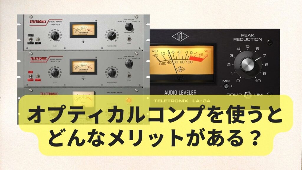【オプティカルコンプを使うとどんなメリットがある?】 オプティカルコンプは、光センサーを使用して信号を減衰することで動作するコンプレッサーで、独特のサウンドを生み出すことができます。 いわゆる光学式コンプです。 柔らかいサウンド オプティカ... -