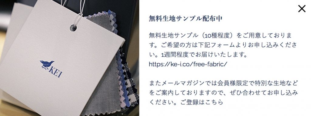 オーダーメイドというと値段が高そうなイメージがありますが、KEIの場合には破格の1枚¥4,980からシャツのラインナップがあります。