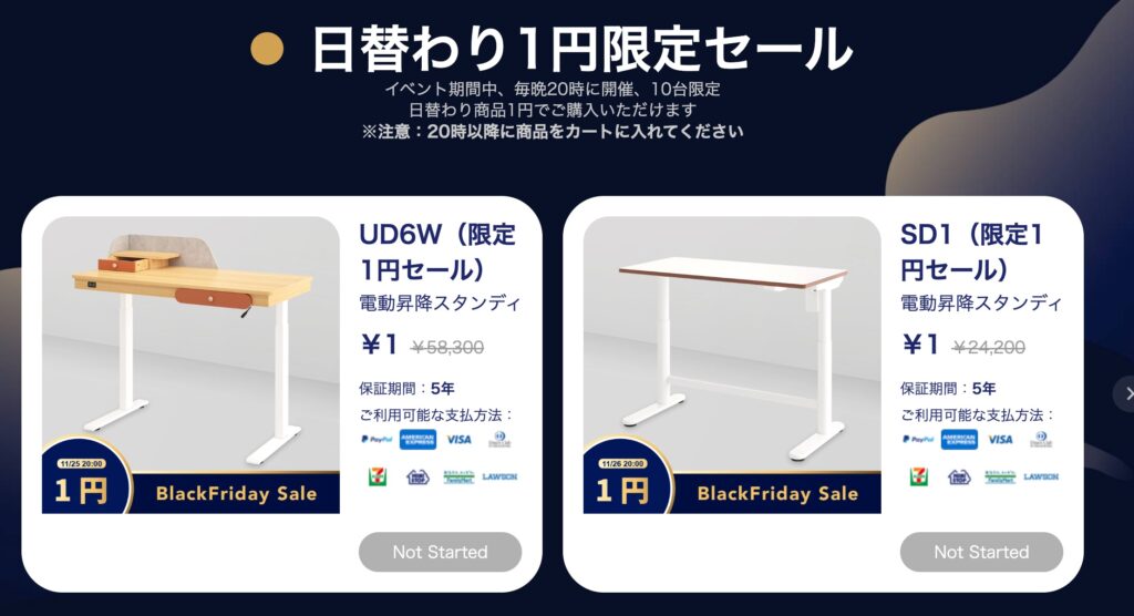 ただ電動昇降デスクは高価な傾向があるのでこのブラックフライデー時を狙って少しでも安く手に入れましょう。