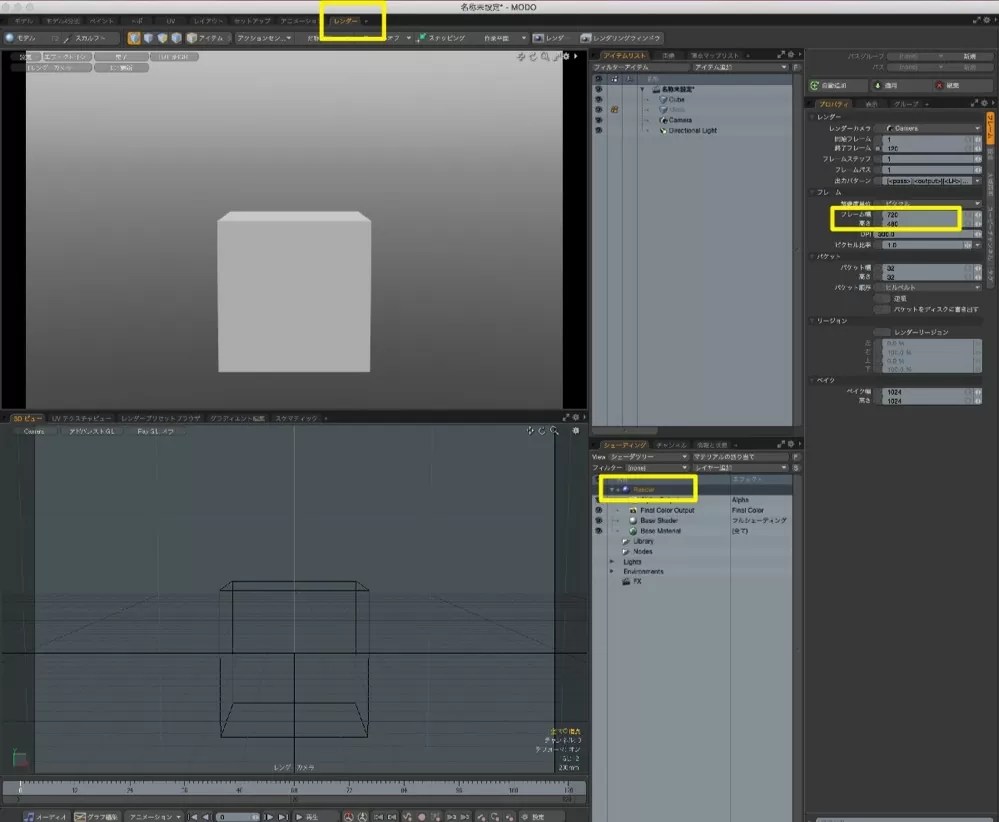 MODOではレンダリング時に作成するファイルサイズを指定することが可能です。