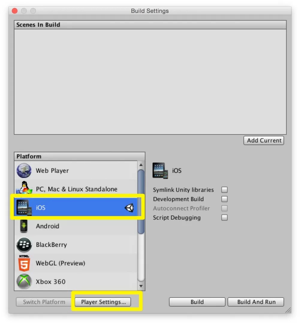 Build Settingsを開きます。 -