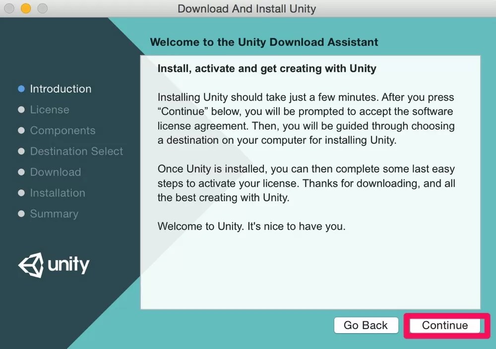 - ファイルを開いてUnity Download Assistantを起動