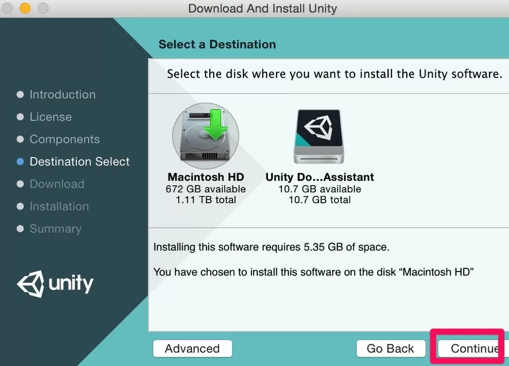 Download する内容を選びContinueを選択。