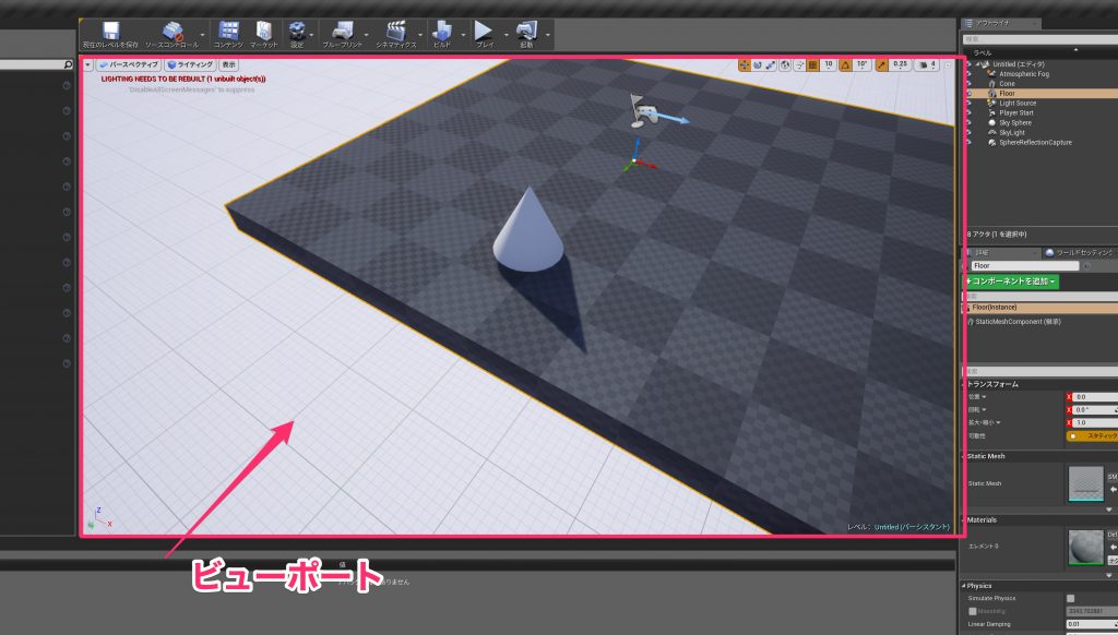 ・左クリック+Alt+マウス移動 選択したアクタの中心にしてカメラが回転