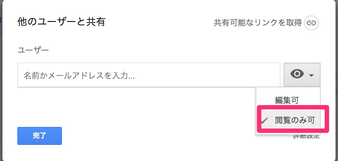 「共有可能なリンクを取得」して他のユーザーへファイルを見せる場合には必ず権限設定をしましょう。