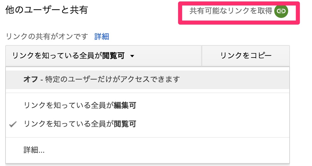 Googleドライブを使う上で、このリンクの権限設定も重要なポイントになります。