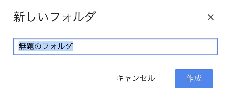 フォルダの名前を決めて「作成」を押します。(名前は後から変更可能です)