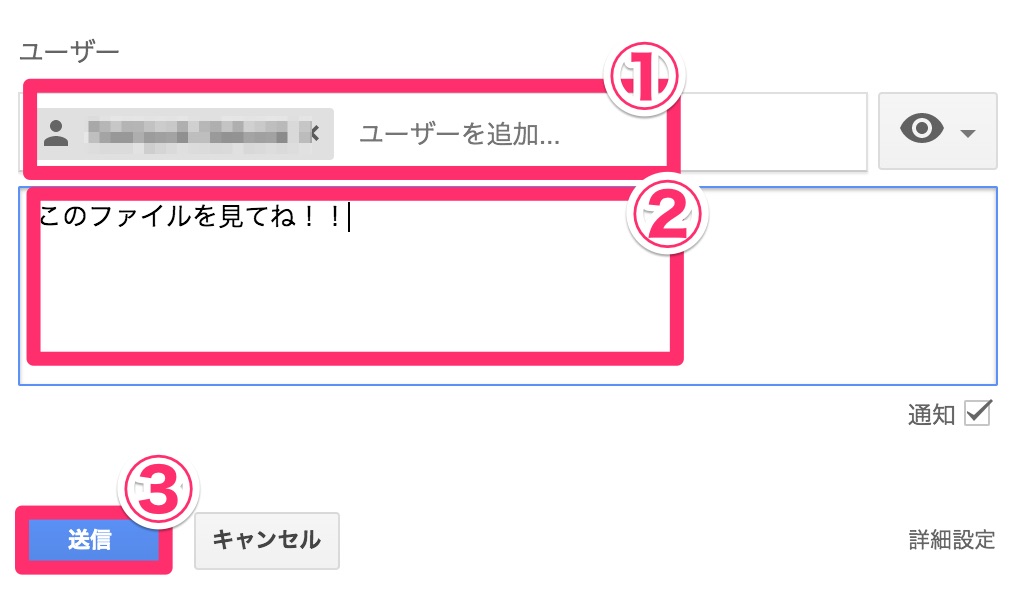 特定のユーザーにだけURLを教える場合にはユーザーの欄を利用すると便利です。