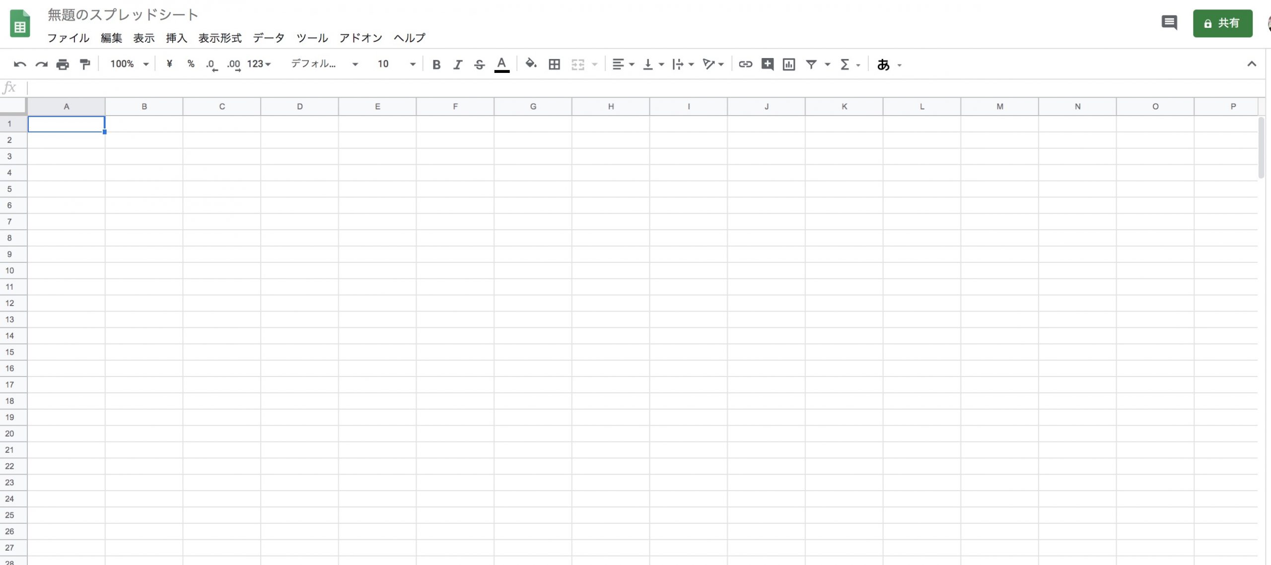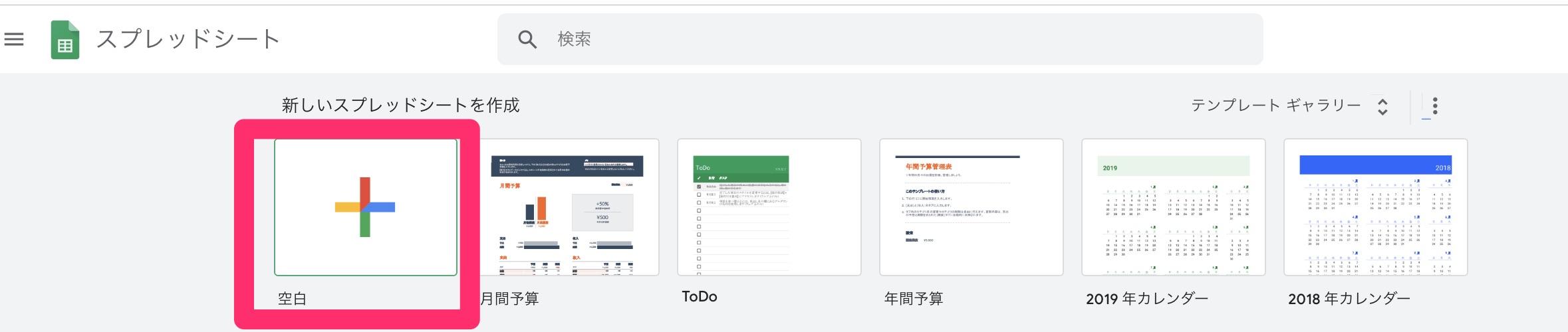 「空白」を選ぶことでまっさらなスプレッドシートを新規作成できます。